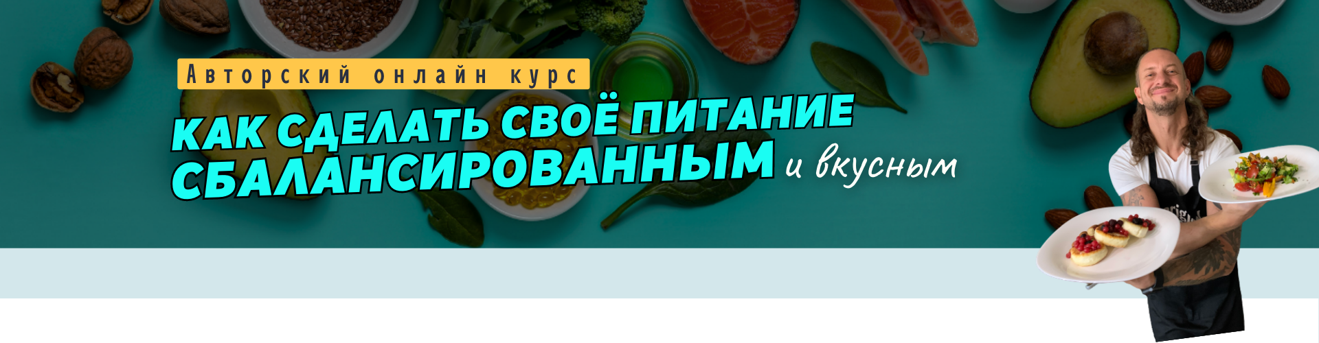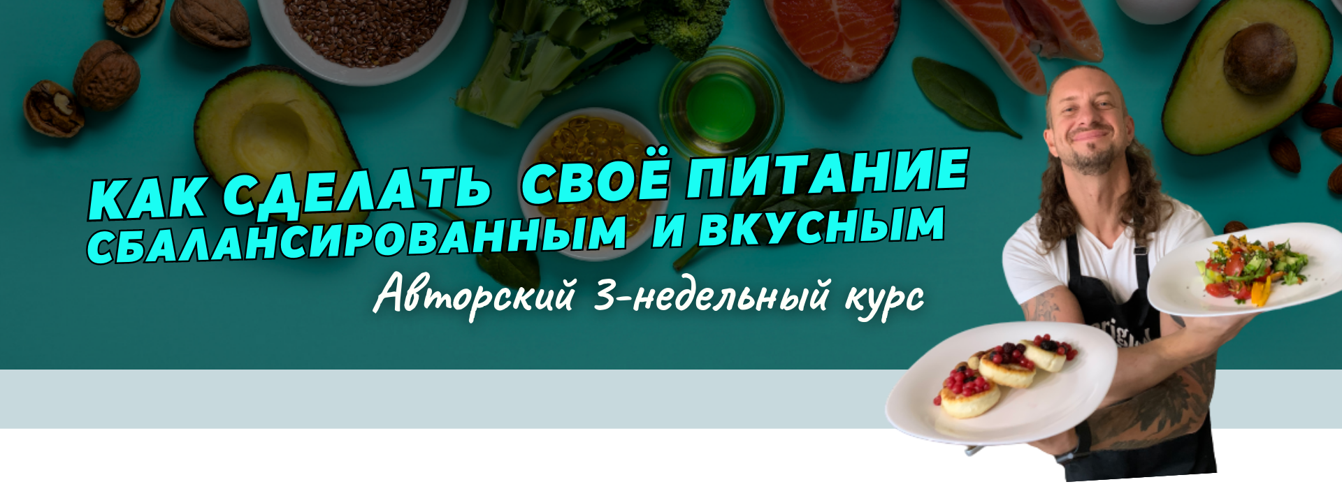 Курс создан по мотивам кулинарного сборника полезных рецептов "ЕДА БЕЗ ВРЕДА" Автор и куратор диетолог Олег Гитарёшкин
